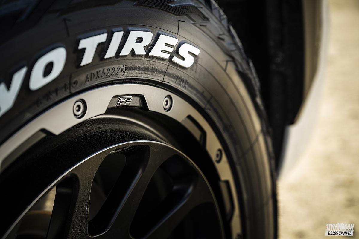 やわらかな12個のホールを備えたそのディッシュは、専用設計ならではの限界ギリギリのアールでコンケイブを描く。車種ごとに大きさが異なるブレーキキャリパーとの干渉も、専用設計だからしっかりと対応。軽くて薄く、しかも強靭なリムを成型できるフローフォーミング製法を採用している点も、重量がかさみがちな最上級オフローダーにはうってつけだ。