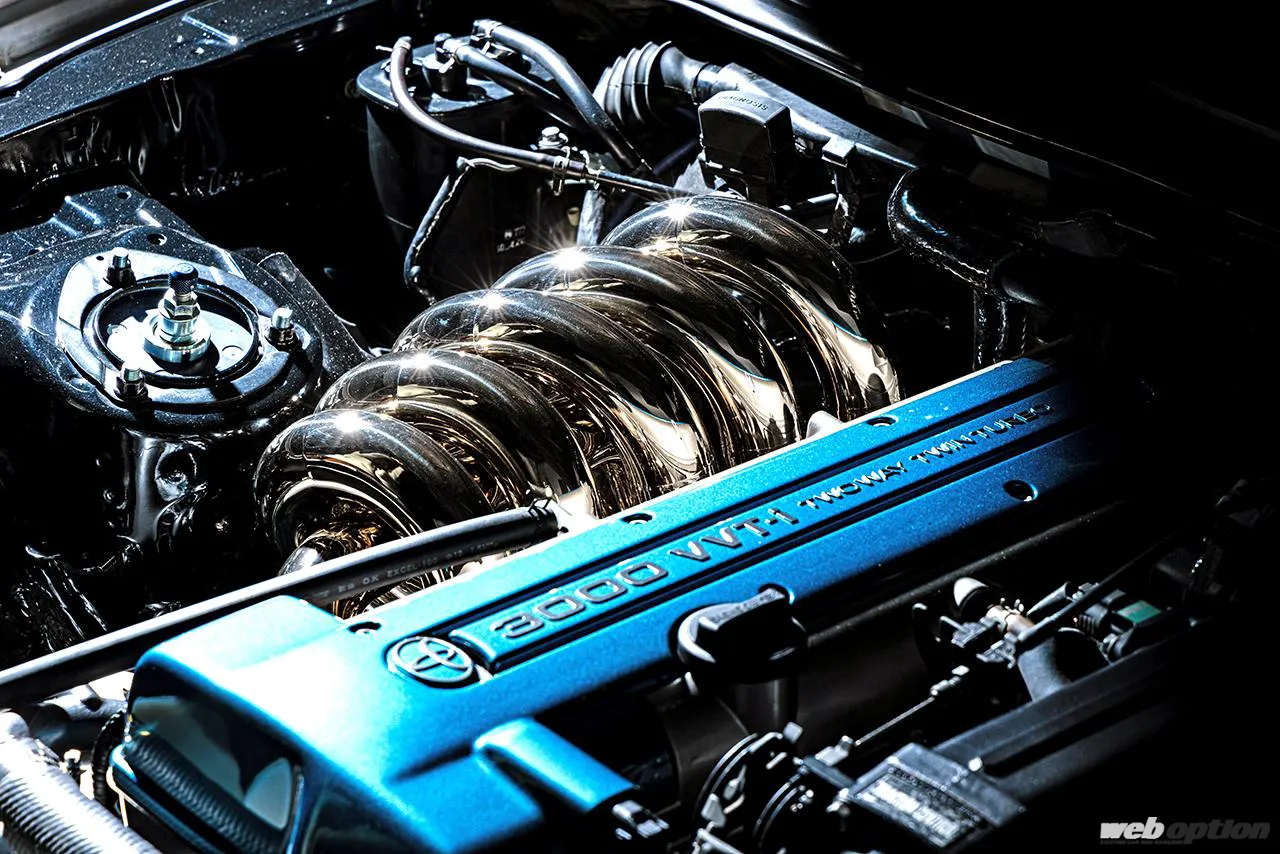 とはいえ、ベース車両は前期モデルで、ストックしていた2JZエンジンは後期モデル用。VVT-iの有無など多くの違いからポン付け搭載とはいかない。さらに、折居さんがターボチューンには食傷気味だったこともあり、最終的に過給機をターボシステムからスーパーチャージャーに切り替えた後期型パワーユニットをカスタムインストールする方向でまとまった。
