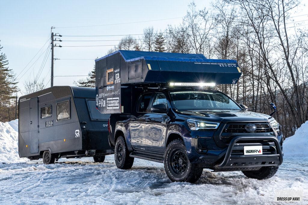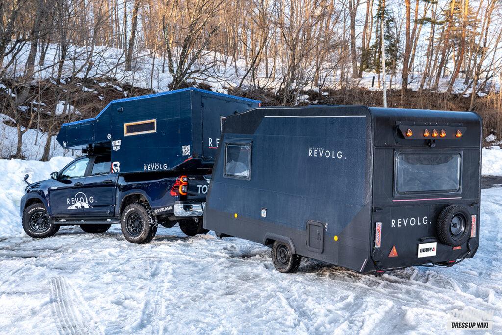 そんなダン&シィーの新たなチャレンジが車中泊ホテルをコンセプトにしたNEOCHYAYAの構想で、ヒッチメンバーを介するトレーラーハウスの形態を採用しながら2024年末に完成。今回はそんな新機軸のNEOCHYAYAも含め、ふたりの生き様を詰め込んだREVOLG.の2025NOWに雪中キャンプで密着です!!