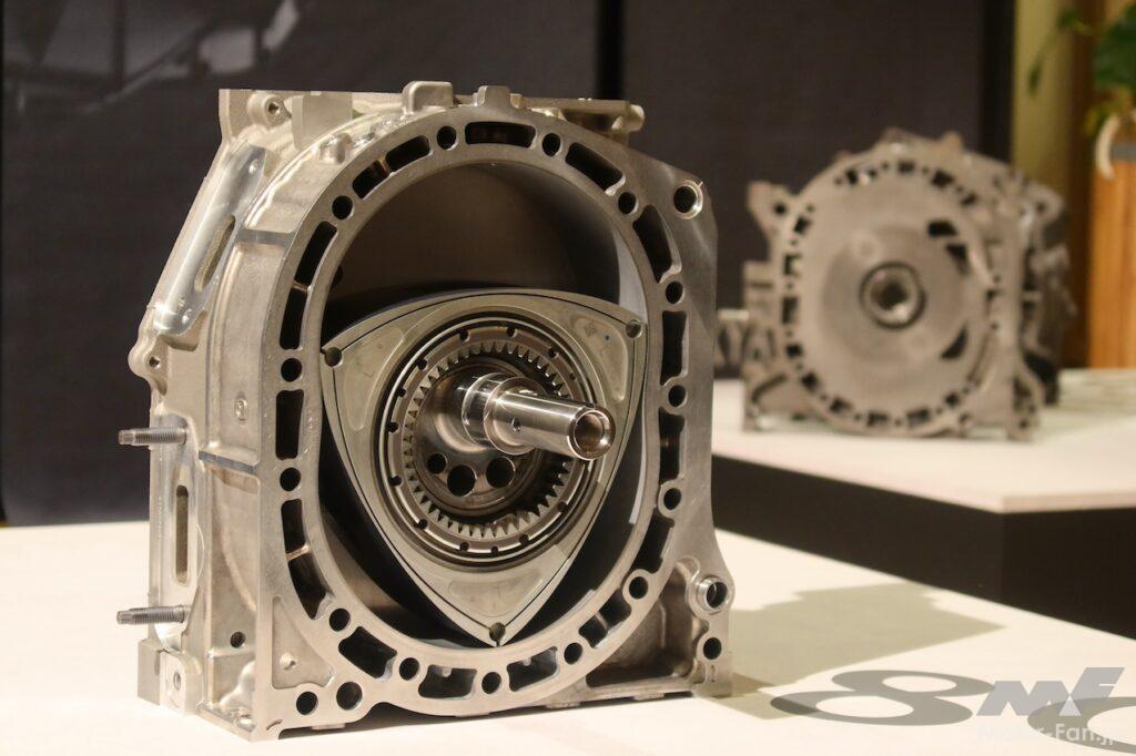 「飽くなき挑戦」の象徴であるロータリーエンジンは今年、11年ぶりにその機能を動力源から電動車の発電源へと姿を変えて復活した。カーボンニュートラルなどの新しいモビリティの時代へ向け、新規開発された8C型ロータリーエンジンは「MX-30 Rotary-EV」に搭載され、航続距離に不安の無い電動車の新しい提案に活用されている。