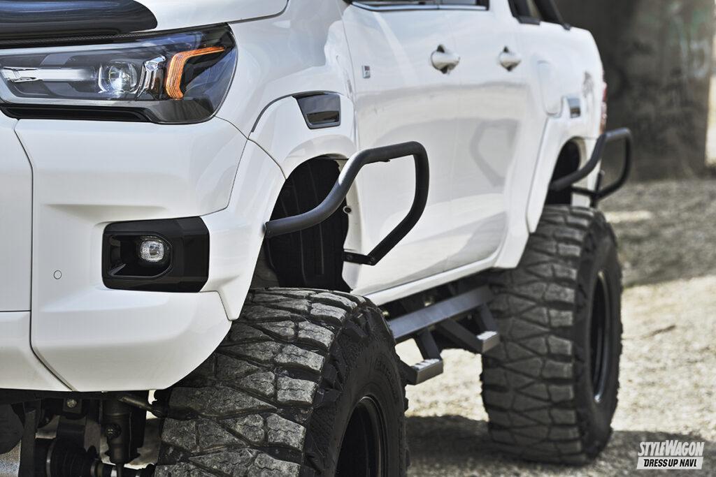 ツーリング用とサーキット用をそれぞれ持つなど、趣味でバイクを楽しんでいたtsumijiさん。トランポ用のクルマが欲しくなり、ハイエースやグランエースなどが候補に上がったものの、最終的にルックスでハイラックスに白羽の矢が立った。ただ、運命のイタズラなのか、購入後トランポにすることはせずカスタマイズの世界に足を踏み入れていくことに。
