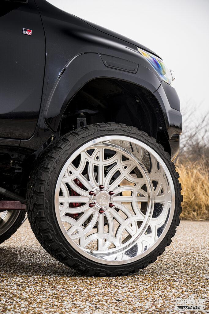 それまでに乗っていた86にも別れを告げ、本命一本に絞ってのカスタムライフがスタート。インスタグラムを頼りに海外のハイリフト勢の情報を集めてはイメージを膨らませ、一度は小口径ホイールを軸にしたUS仕様を目指そうとしたが、サイズ面で折り合いがつかなかったそう。