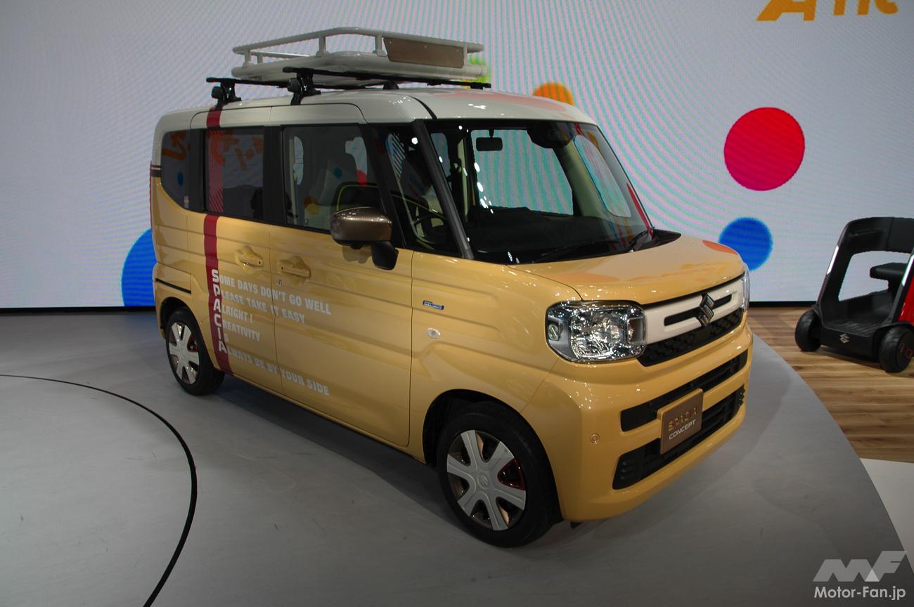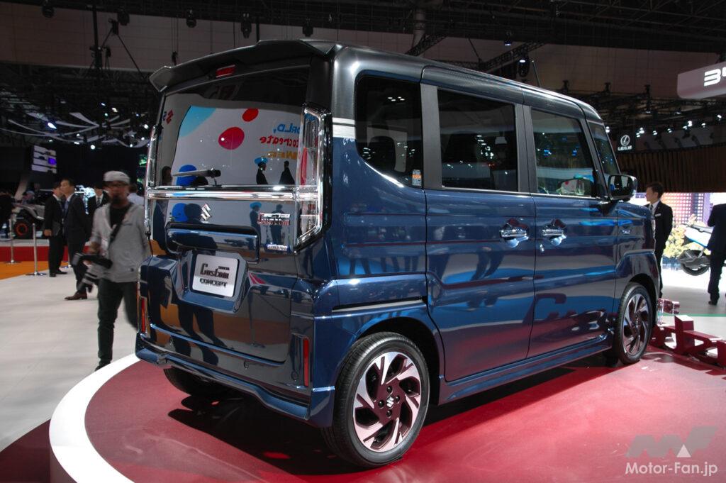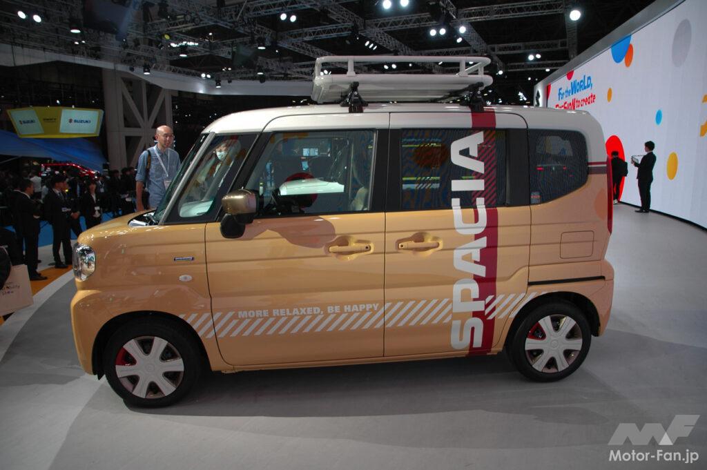ジャパンモビリティショー2023のスズキブースに展示されたスペーシアコンセプトとスペーシアカスタムコンセプトは、共に“コンセプトモデル”としながらも、その完成度は極めて高かった。新機構を追加しつつも、全体としてはキープコンセプトを感じさせる仕上がりから、ほとんど市販モデルでは?と思わずにいられない。