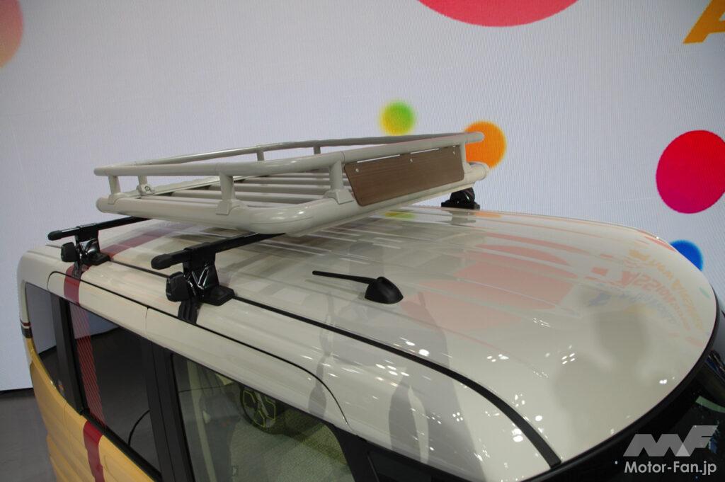このステッカー類や赤い差し色のホイール、太めのパイプで組まれたルーフキャリアなど、そのまま純正アクセサリーとして設定されそうだ。