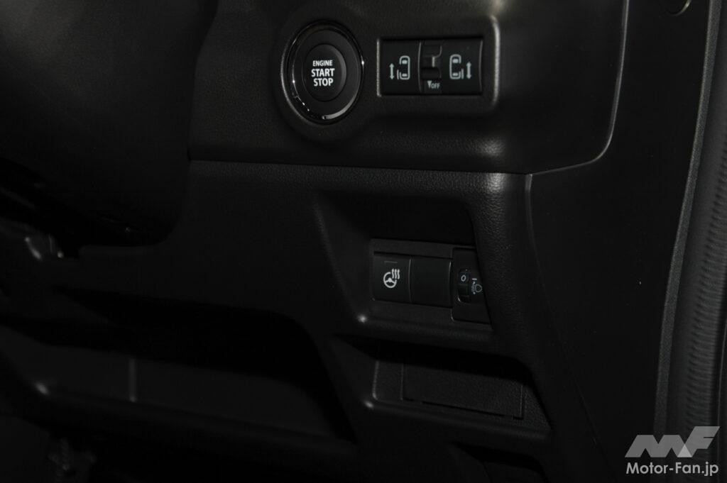 従来モデルでもありがたい装備であったシートヒーターのスイッチも確認できたほか、カスタムコンセプトにはステアリングヒーターのスイッチも見受けられた。もし、市販モデルにも装備されるのなら、軽自動車の豪華装備化もここに極まれりといった印象だ。