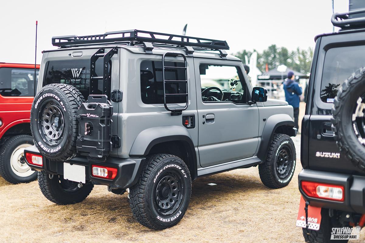 ●外観:ビーストR前後バンパー、ショウワガレージルーフラック ●足まわり:ショウワガレージSGアジャストコイル75X-BAセット ●ホイール:レイズ・A-LAP-O7X(16×6.0J) ●タイヤ:ヨコハマ・ジオランダーMT(145/75R16)