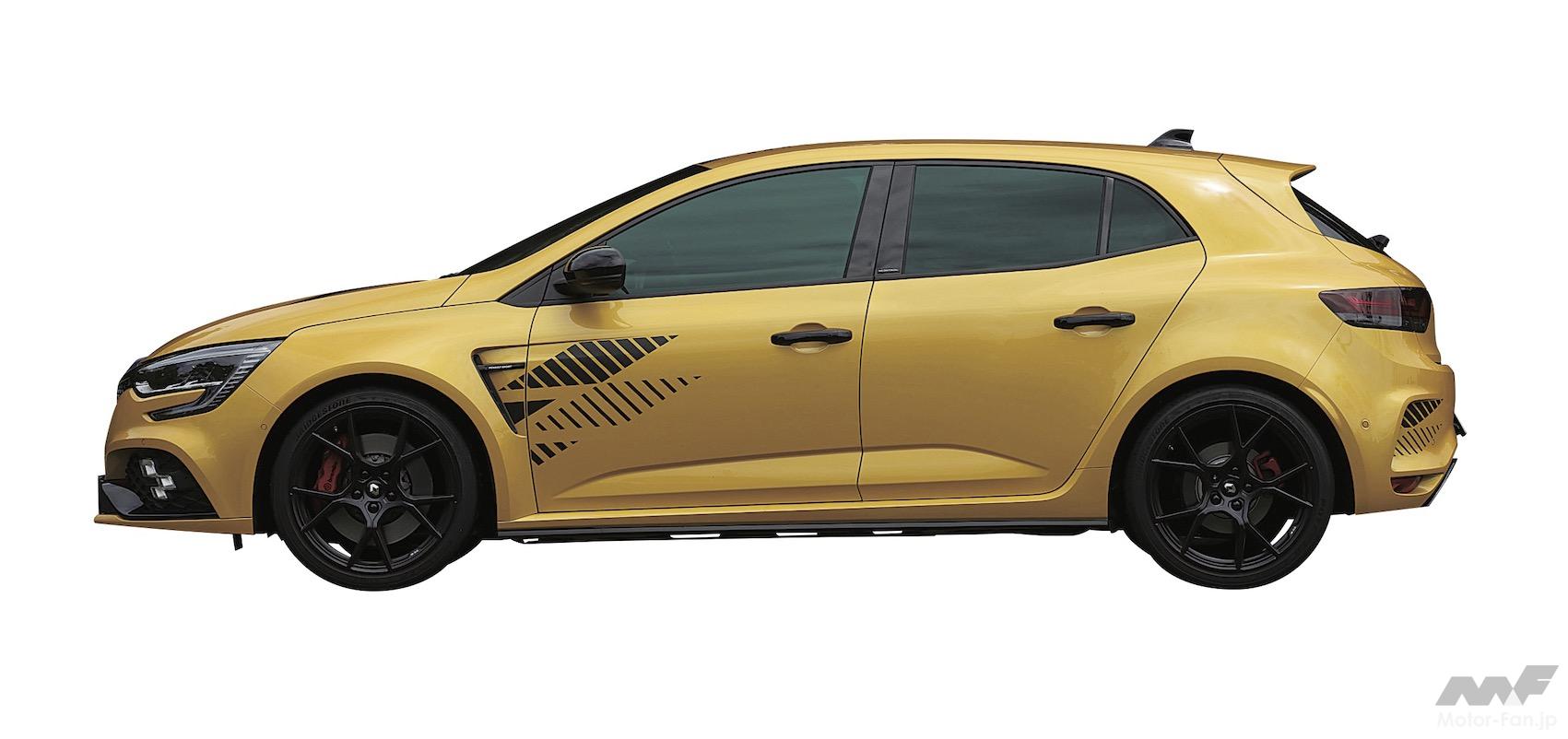 ベースはメガーヌRSの中でも、サーキット走行に対応してフロントアクスルにトルセンLSDなどを組み込んだRSトロフィーで、1.8ℓ直列4気筒ターボエンジン、4コントロール、HCC、トルセンLSDなどを受け継ぎつつ、ホイールは1本あたり2㎏軽い「フジライト」に履き替えたことが特徴だ。