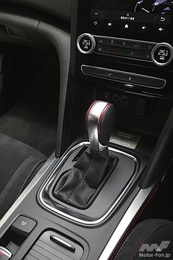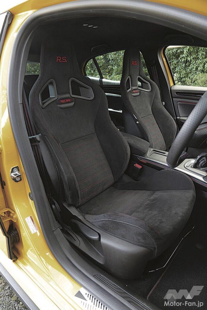 外観はフジライトのホイールや、昔のルノーエンブレムを思わせる菱形のデカールが目につく。ロゴやドアハンドルなどのブラックアウト化も、ほかのメガーヌRSとの違いで、さらに精悍な雰囲気になった。インテリアは、セレクターレバー奥に、日本でもその名を知られる開発ドライバー、ロラン・ウルゴンのサインとシリアルナンバーが入ったプレートが鈍く輝く。走り出すとまず、RSトロフィーとしては足まわりがしっとりしていることに気づく。ホイールが軽くなったためだろう。太いタイヤは硬さを伝えるものの、それを丸めて送り届けてくれるのがフランス車らしい。一方、まわりのスポーツモデルの快適性が増した結果、メガーヌRSのストイックなキャラクターがさらに強調されている気もした。