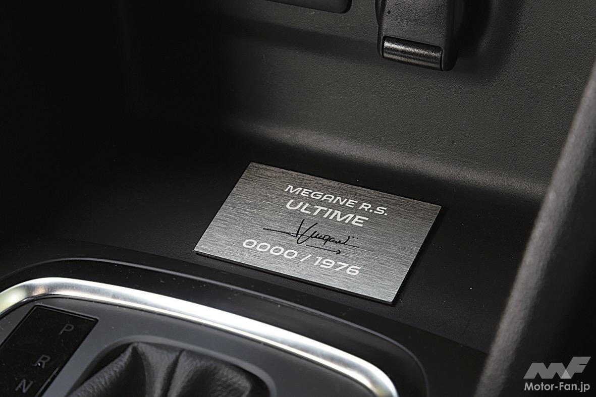 シャシーのトピックは4コントロールと呼ばれる四輪操舵システムと、ダンパー内にセカンダリーダンパーを組み込んだHCC(ハイドローリック・コンプレッション・コントロール)。初代から装備する、ストラットからハブキャリアを独立させたダブルアクシスストラットサスペンションも引き続き採用している。この現行メガーヌRSの最後を飾るのが、ルノー・スポールが誕生した年に合わせ、世界で1976台のみが生産されるウルティムで、ワールドプレミアの場はなんと今年1月に行なわれた東京オートサロン2023だった。