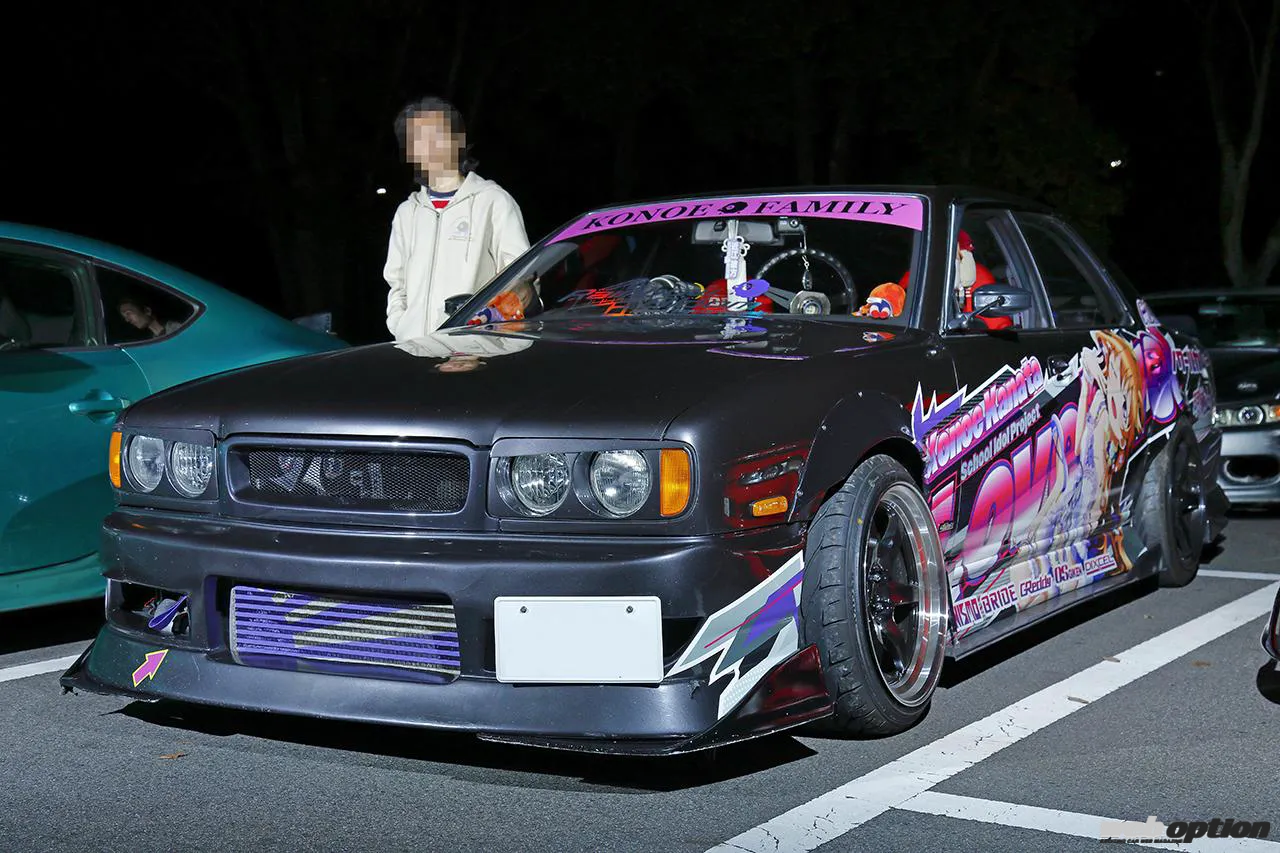 フロントタイヤに軽くネガティブキャンバーの付いたクルマが多い。話を聞いてみると、「グリップもドリフトも、どっちもやるんですよ」とのこと。