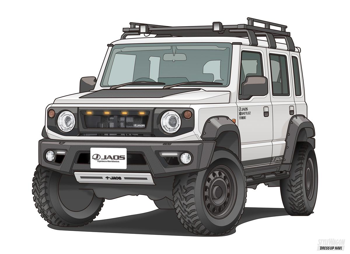 どこよりも早くノマド用パーツのイメージCGを発表したのが、ジムニー用ボディキットでおなじみのダムド。ラインアップはブリッティッシュなオフロードスタイルを具現化したリトルD、そして高級SUVを連想させるリトルG。後者は都会的な高級スタイルに仕立てたアドバンス、ネオクラシカルな雰囲気を前面に押し出したトラディショナルの2パターン。合わせて3通りのスタイルを提案。すでに一部パーツは海外仕様車をベースに開発を進めている。