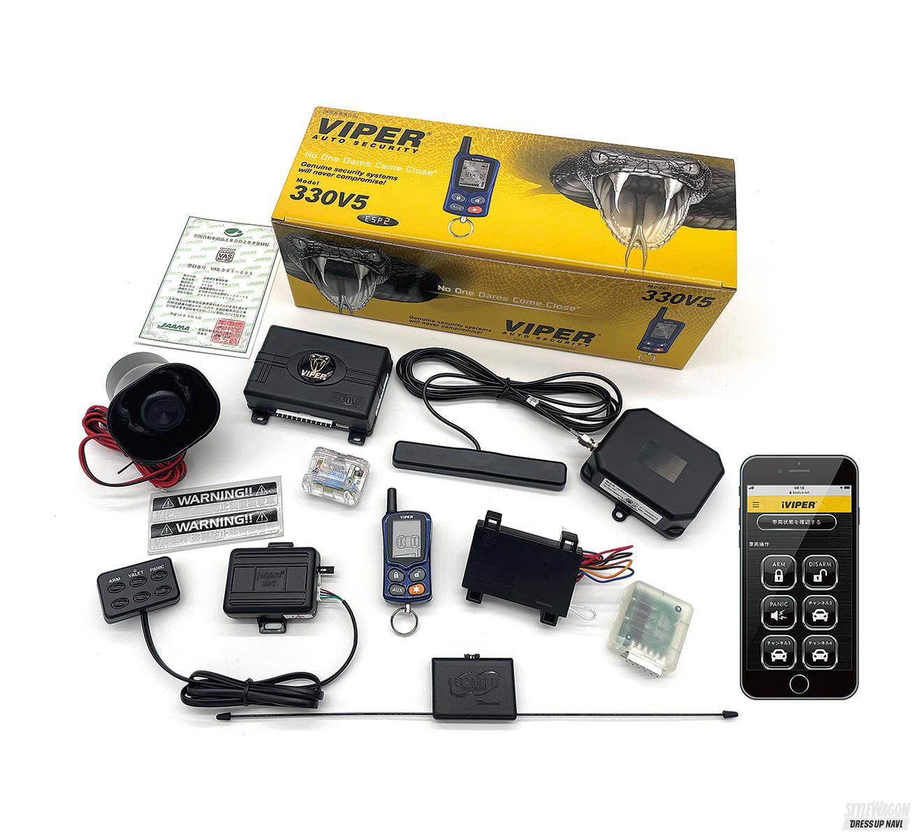パッケージ内容:VIPER330V5、キーパッド式イモビライザー、2段階式デジタル傾斜センサー、iVIPER通信サービス、ソーラーパネル式AI防犯カメラ
