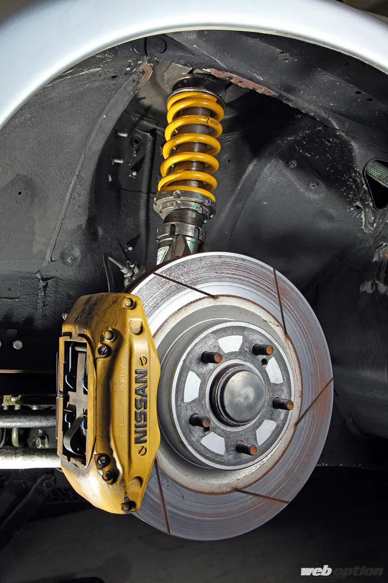 足回りは、エンドレスのジールファンクション車高調でセットアップ。アーム類も調整式を多数投入している。ブレーキ系チューンにも余念はなく、フロントキャリパーにはS14純正よりも軽いECR33純正を流用し、ローターにはBNR32Vスペック用の324mmスリットを装備する。