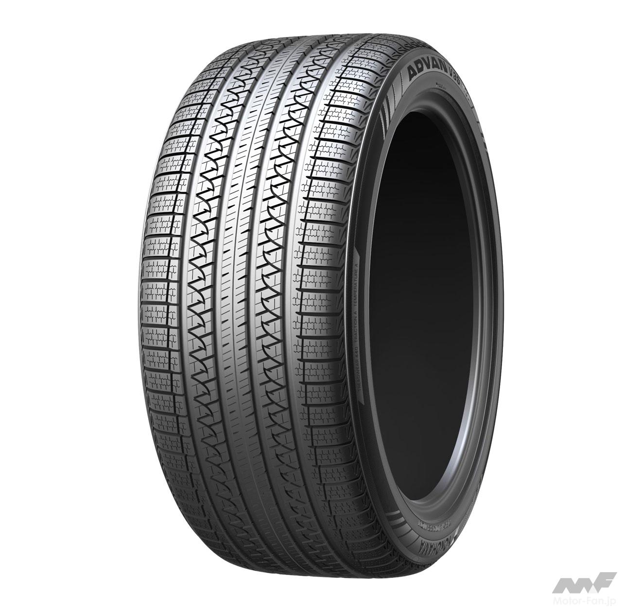 「アドバンV35」は横浜ゴムのグローバルフラッグシップタイヤブランド「アドバン」シリーズのウルトラハイパフォーマンスタイヤ。ドライ/ウエット路面から雪上路面まで、さまざまな路面状況での走行を想定して開発(※)されており、タイヤサイドには「M+S(マッド&スノー)」が打刻されているほか、優れた走行性能と安全性能を実現しながら低燃費性能も高めている。