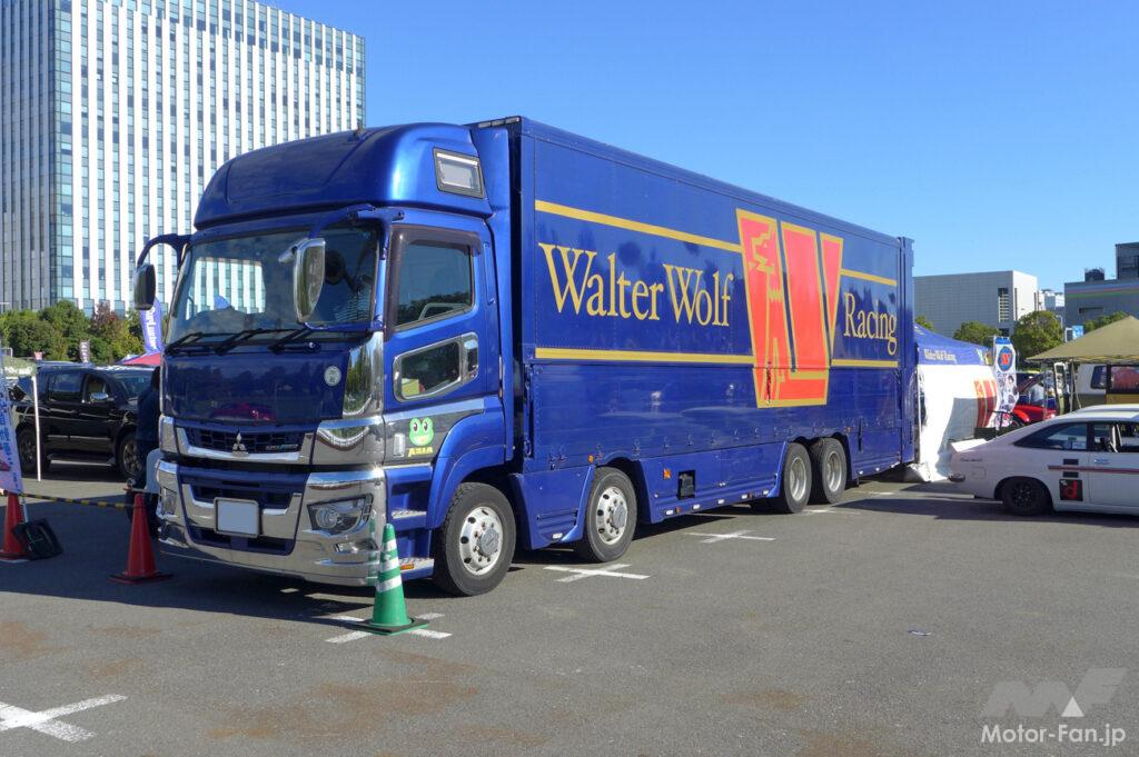 早朝、『アメ車ワールド』の田中編集長がドライブするシボレー・トレイルブレイザーで現地入りすると、会場の一角に磨き上げられた深いブルーの車体に、金縁真紅で書かれたWの文字が踊る大型トラックを見つけた。アルファベットの中には狼のイラストが描かれている。間違いない。アレは、あのエンブレムは『ウォルター ウルフ レーシング』だ!