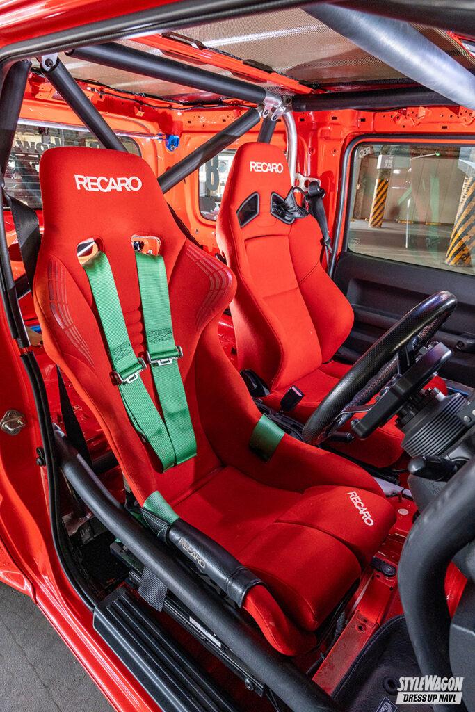 「基本的に僕らはサーキットを走ることを前提にしているがゆえに、そこに力を注ぎたいわけですよ。だから、他社でも良いものがあるならうまく織り交ぜながら、それでもないものや特殊なものを作る、という具合です」。では、サーキットのためだけに全てを犠牲にしているのか? と聞かれれば、実はそういうわけでもない。「ジムニーをカスタムする上で一番大切にしているのは走る楽しさ」と語る横尾代表。