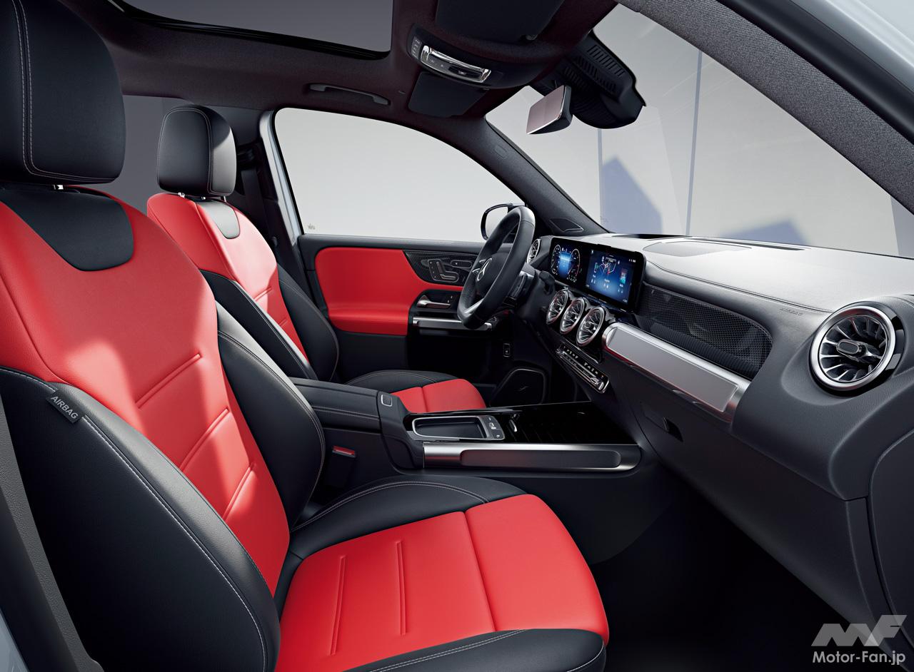 新しい『GLB』は、エクステリアデザインを刷新するとともに、ナビゲーションシステムをSクラス等に採用している最新世代にアップデート。さらに、安全性や快適性を高めるアダプティブハイビームアシスト等が全モデルに標準装備された。また、快適な乗り心地と軽快なハンドリングを実現するアダプティブダンピングシステム付サスペンションや、ブルメスター製サラウンドサウンドシステムがオプション設定された点もニュースだ。