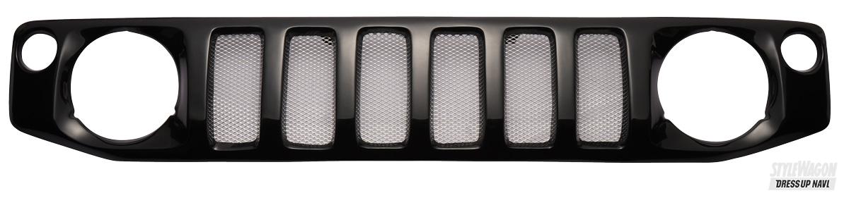 前後のバンパーはアプローチ&デパーチャーアングルを稼げるショートタイプで、オフロードをストレスフリーで走るには必須アイテム。特にフロントは限界まで丈を詰めているため、走破性の面で大きく差が出るだろう。フロントは純正フォグ、リアは純正テールランプをそのまま使えるのも嬉しいポイント。コストを抑えて見た目の印象を大きく変えられる。またフロントマスクのイメージがガラッと変化するフロントグリルは、ラインアップが非常に豊富。価格はすべて同じで、しかも2万円台とお手頃だから最初のカスタマイズにももってこい。あとはじっくり悩んで、好みのカタチを選ぼう。