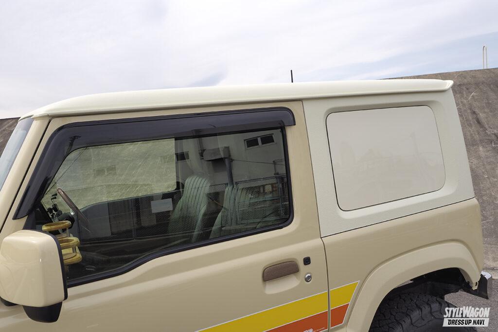 さらに、得意なジャンルの一つにオーディオもある。今回のJB64もフルで手が入っている。ルーフの内張を外して、デッドニングまで施してあるのだ。クルマの車内を快適空間にするこだわりは、車種問わず共通。