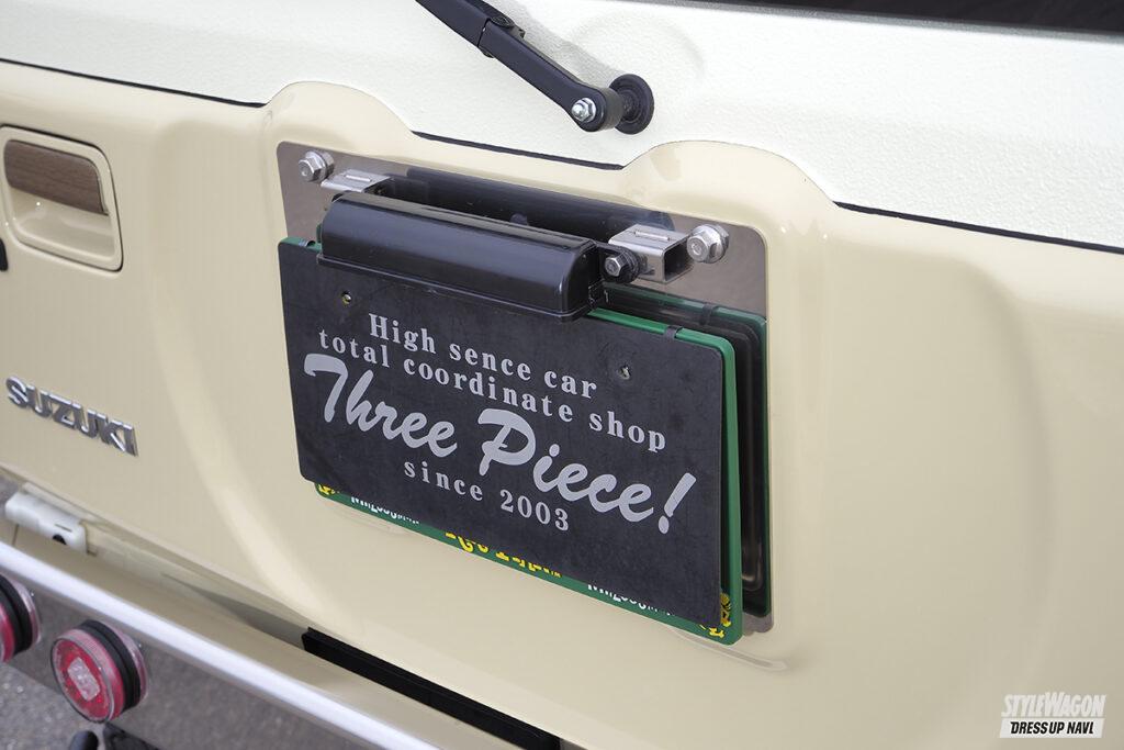アイボリーのJB64が、可愛くカスタムされているスリーピースの取材車両。これ、お客様のオーダー車両で、ちょうど納車直前とのこと。コンプリート販売をしているの? という疑問に、担当してくださった原さん曰く、「うちでは、決まったコンプリートというのはないんです。購入してカスタムを同時に行うお客様と相談して、様々なカスタムを行って行くスタイルです」とのこと。今回の車両をよく見ると、エクステリアから、インテリア、サスペンション、スープアップなど、ほぼ全ての部分に手が入っている。ここまでの話を聞くと、普通のショップのような気がするが、スリーピースのウリは、技術力の高さ。スリーピースは、ジムニーの専門店ではない。言うなればカスタムの専門店なのだ。一つ一つの仕上がりに対してのこだわりが凄く、とにかく美しい。これらのノウハウは、乗用車系のローダウンカスタムを長年やってきたからこそ。