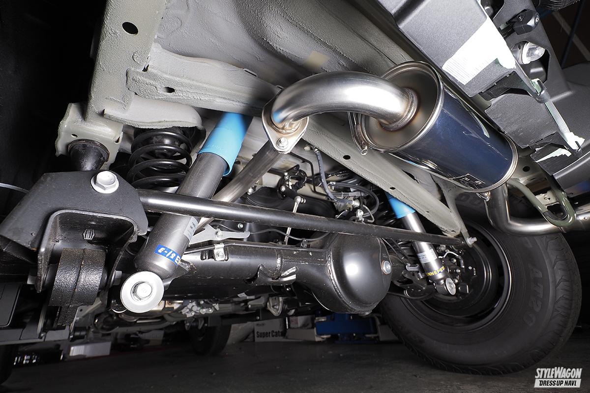 今回いろいろ解説してくださった原さんの愛車は、JB74。スリーピースオリジナルのSAKURAサスペンションを装着。ノーマル車高から約2インチアップまで対応したエナペタル製ダンパーは、しなやかで乗り心地が良く、それでいて車体姿勢が安定している。ノーマルの船を漕ぐような挙動が綺麗に消えている。スポーツをするようなサスペンションではないが、普段使いの乗り味はかなり良い。
