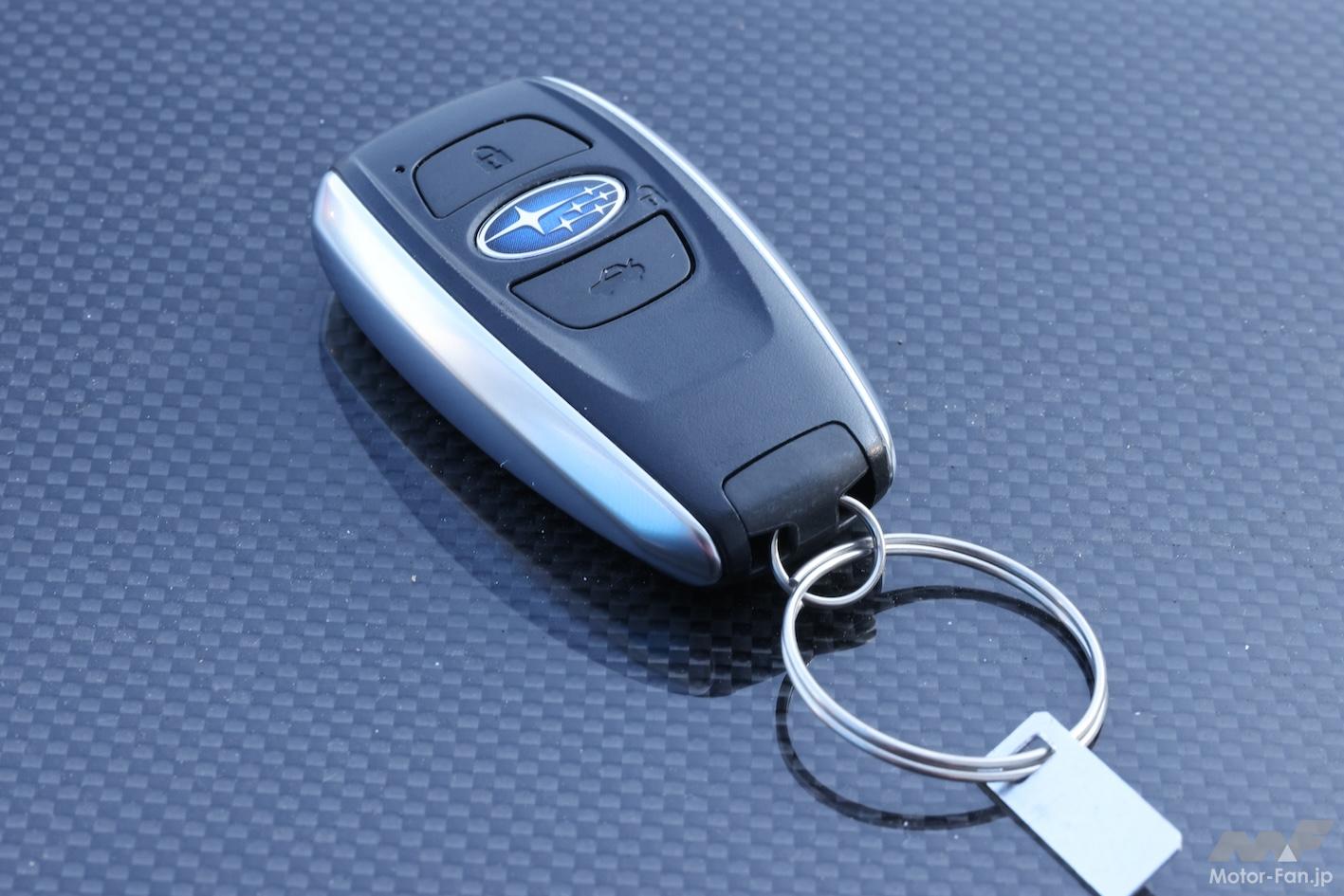SUBARUディーラーではウインドウリモート開閉機能の設定を頼むこともできる。これは車外からアクセスキーを使って窓の開閉ができるというもの。窓を閉め忘れてクルマを降りてしまった場合は、アクセスキーの施錠ボタンを押し続けていればドアロック後に窓が閉まる。逆に解錠ボタンを押し続けていれば解錠後に窓が開くので、夏場には便利だろう。この機能は初期設定では作動なしとなっているので、6か月点検の時に作動ありに変更してもらった。
