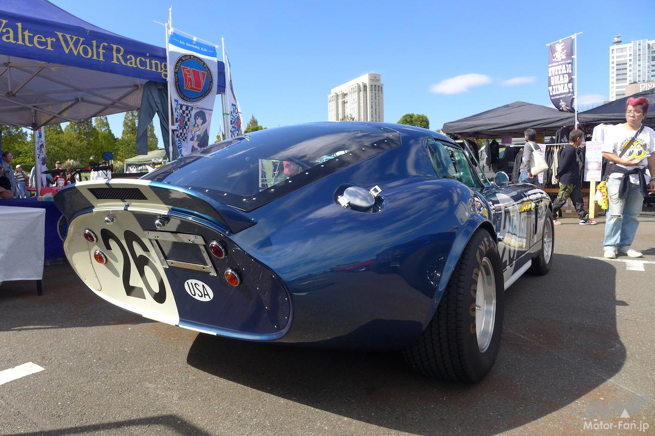 だが、今回アメフェスに展示された車両はいずれのシャシー番号でもない。展示車両の細部をよく検分すると、後年スーパーパフォーマンス社が製造したレプリカではないようだが、1960年代にレースで活躍した車両とは細部の意匠が異なる。WWRJのスタッフに尋ねると「本物」との答えが返ってきた。これは一体どう言うことだろうか?