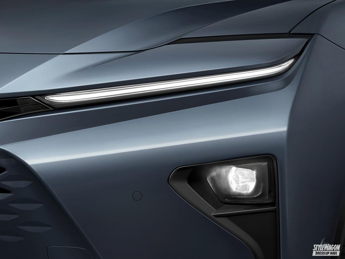 エクステリアでは顔が印象的。バンパー一体型のフロントグリルはボディと同色で、個性的でもあり独創的とも感じられる顔だ。さらに水平基調のデイタイムランプを採用したハンバーヘッドフェイスはトヨタの顔として印象付けられる。