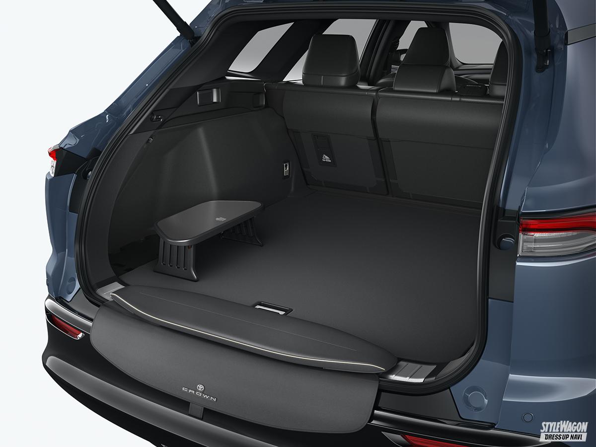 エステートの特徴ともいえるラゲッジは、後席を倒すとトヨタ初の2mのフルフラットスペースができ、これまでのクラウンでは想像もできない、車中泊を快適にするキャビンが待っている。アウトドアな道具を満載し、上質な走行性能と品格を備えた大人のアクティブキャビン、それがクラウン・エステートなのだ。