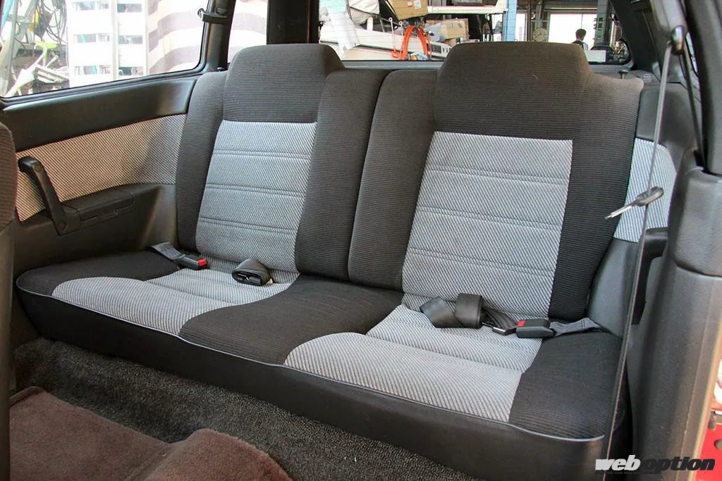 今回取材したLX-Sのポジションは、エンジンはDOHC、しかし装備は最廉価グレードLXに準じるというもの。一方で、フロントにベンチレーテッドディスクブレーキとスタビライザーを装備し、タイヤも185/70SR13(LXは165SR13)にサイズアップされることから、走りの性能を追求したスポーティモデルと言っていいだろう。