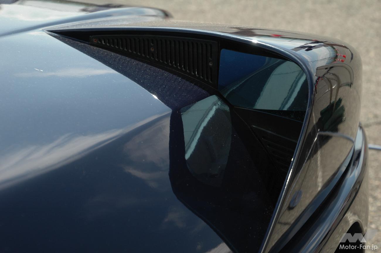 ハイデッキのリヤビューは横一文字のガーニッシュが1980年代末の流行を感じさせ、ザガートによるアルファロメオSZに通じるものがあるように感じられる。また、トランクサイドに切り欠きがあり、その中にはスリット付きのカバーが見えるのだが、例えばエアアウトレットのようななんらかの機能があるのかはわからなかった。