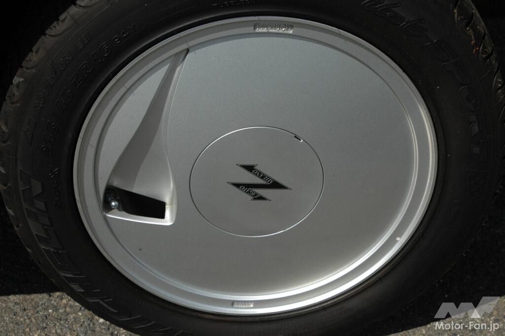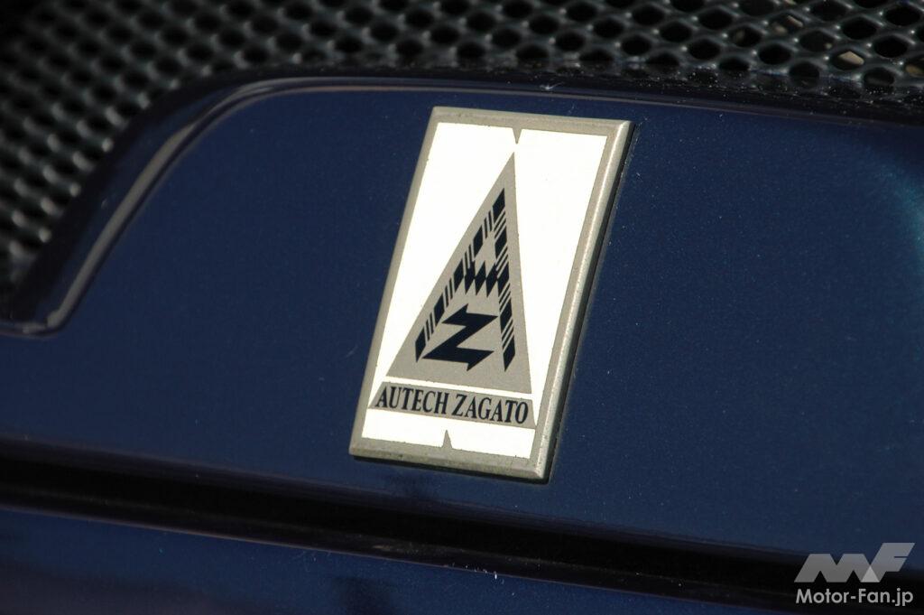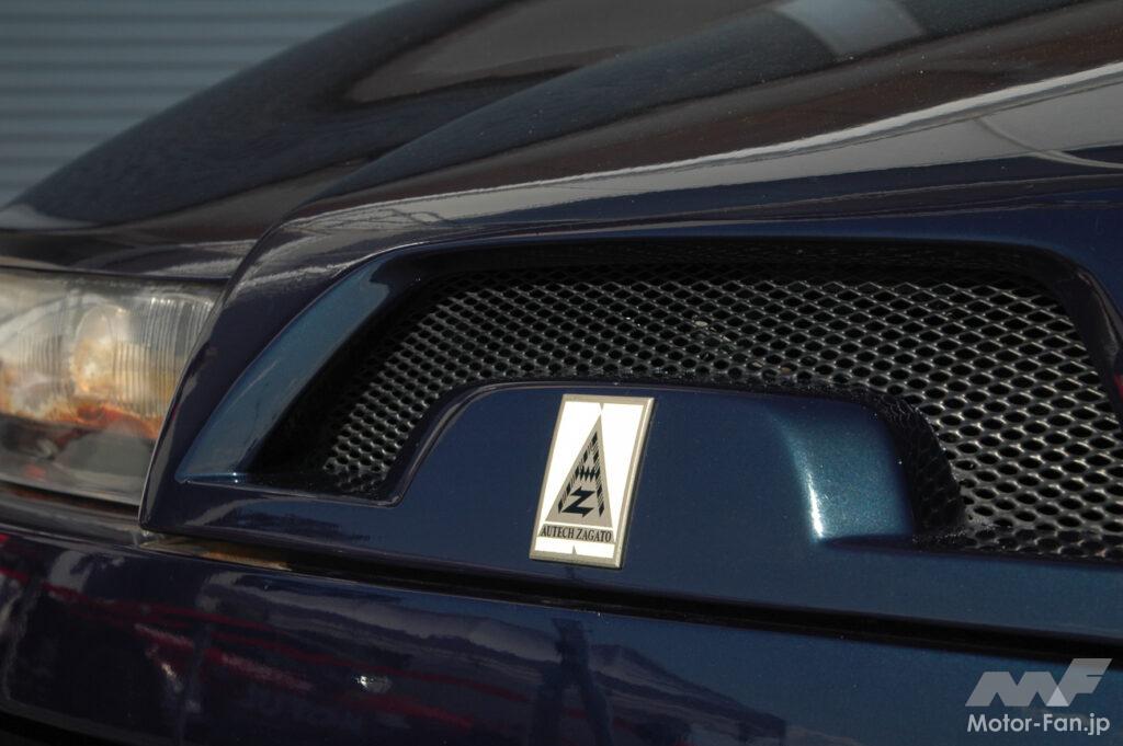 オーテックジャパンとザガートの共同開発車だけに、フロントグリルの中央に配されたエンブレムは「A」と「Z」を縦に並べて図案化したものに「AUTECH ZAGATO」の文字が刻まれる。一方でフロントタイヤ後方のエンブレムや、アルミホイールにはザガートのロゴのみがあしらわれたいた。