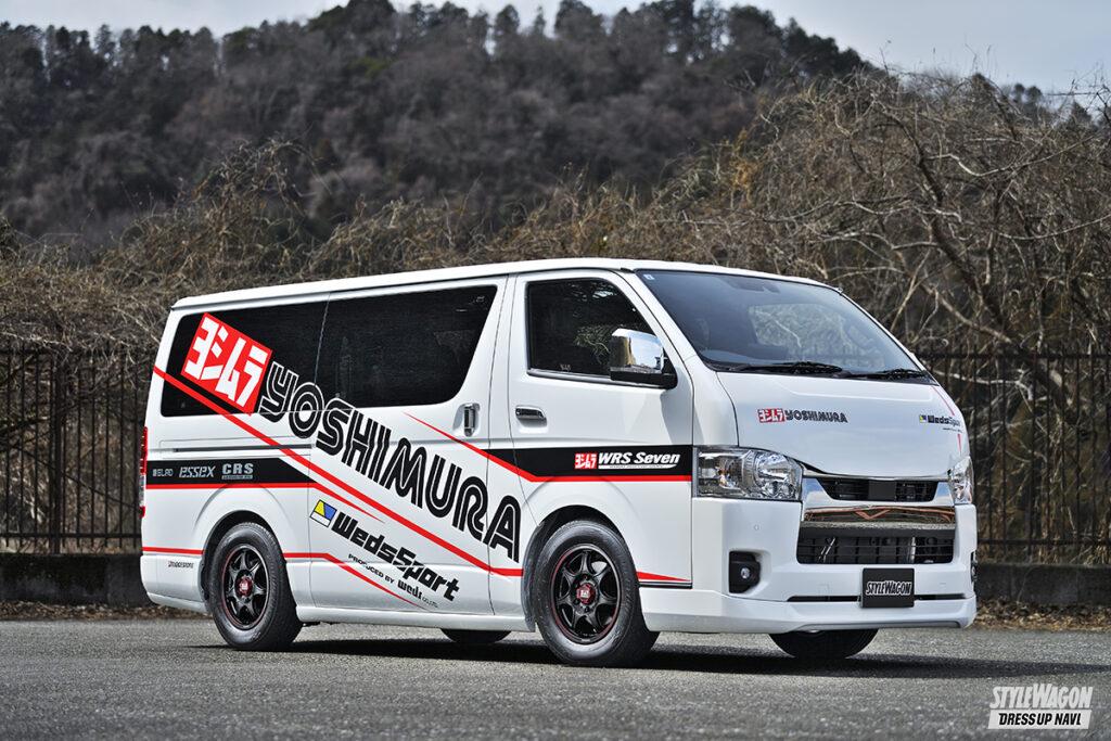 2輪レースシーンを長きに渡り牽引するヨシムラと、4輪ホイールのトップメーカーであるウェッズがタッグを組みリリースした「ヨシムラWRSセブン」。昨年のオートサロン2024で発表され、カテゴリーの枠を超えた名門同士のコラボモデルとして大きな話題を集めた。そんな「ヨシムラWRSセブン」にJWL-T規格のハイエース向けサイズが追加された。2輪を積み込むトランポ仕様をはじめ、カスタムベースとしても絶大な人気を誇る車種だけに、これは絶対に見逃せない。