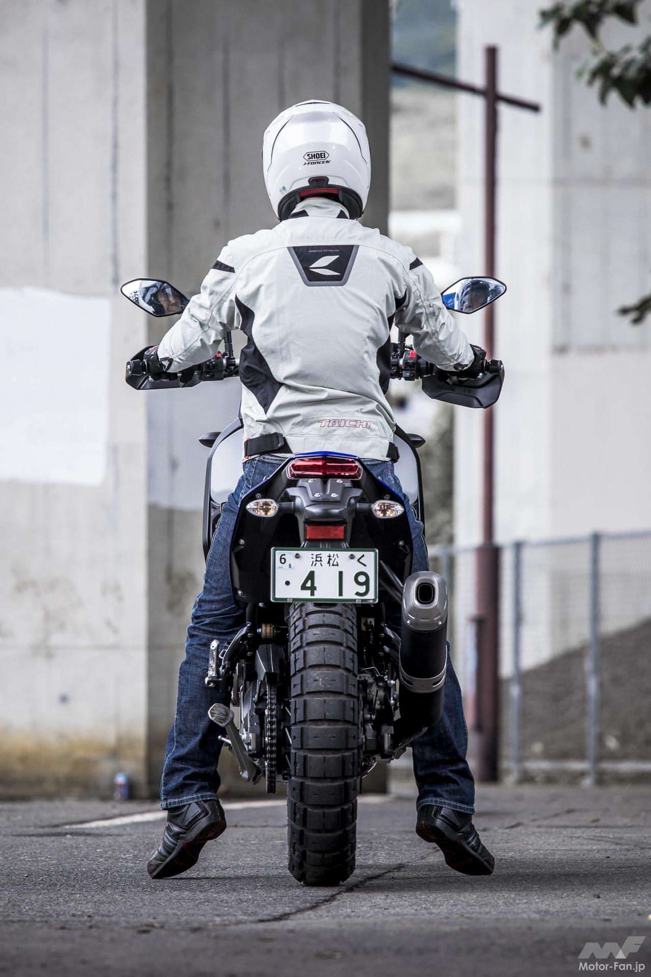 試乗車を受け取ると、その立派なサイズ感には改めて驚かされた。実際のホイールベースや全長、全高などはホンダのCRF1100Lアフリカツインよりも大きい。ただ、全体にシュッとしたスマートなデザインのせいか車体のボリュームから受ける威圧感は少ない。車両重量が200kg台であることも含め、やはりミドルクラスらしい親しみが感じられた。