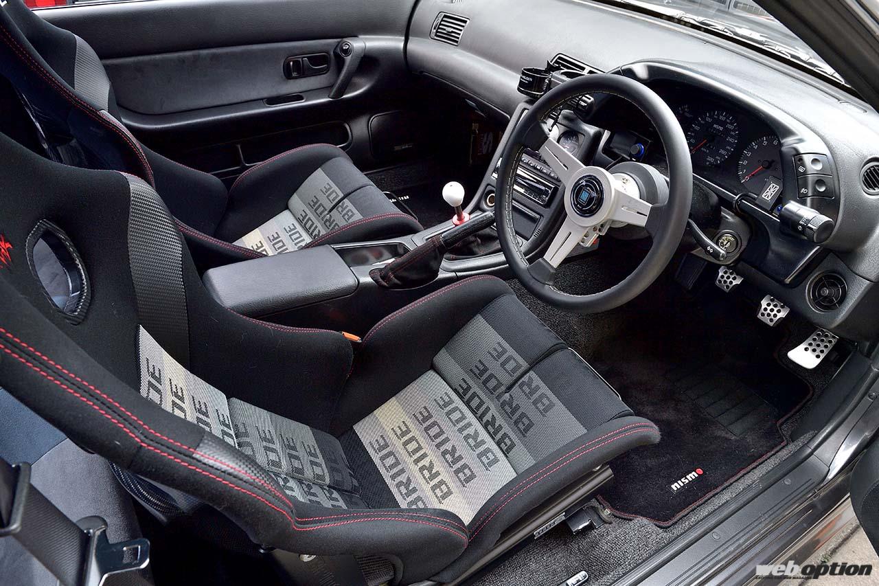 室内は追加メーター等を配置せず、ストリート然としたシンプル&クリーンな空間を構築。ただし、ミッションは800psのパワーをフル発揮させるためには純正5速では役不足と判断し、OS技研のOS-88シーケンシャルドグに変更済みだ。