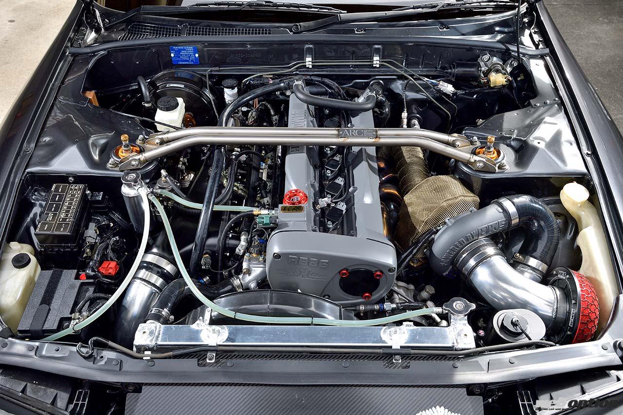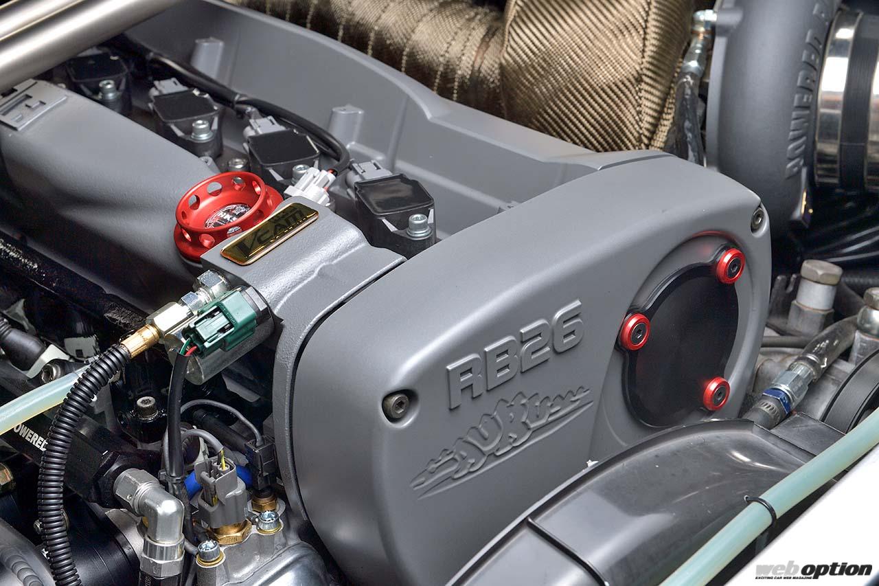 心臓部のRB26DETTは、HKSの2.8Lキャパシティアップグレードキット・ステップ2にVカムを組み合わせた鉄板仕様。そこに同じくHKSのGT6290_BBタービンをセットすることで、実測780ps&84kgmを引き出している。