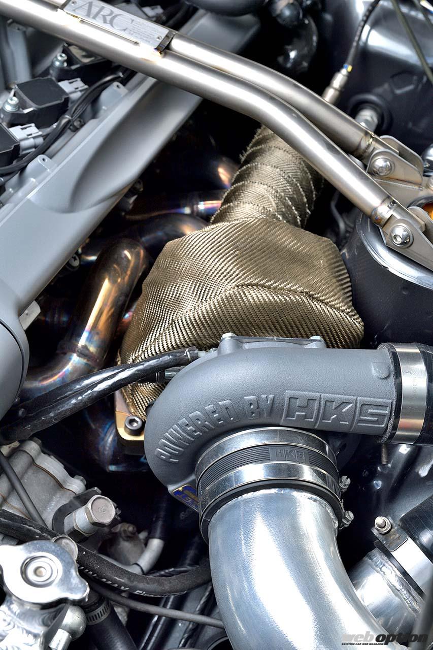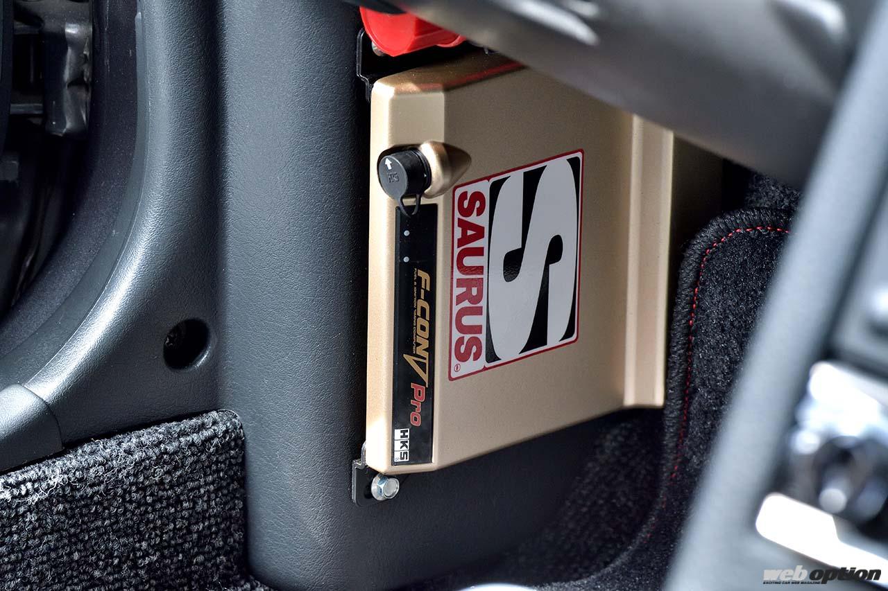 エキゾースト環境は、ザウルスオリジナルの6-2-1EXマニを経てHKSのスポーツキャタライザー→スーパーターボマフラーへと繋がる完全合法レイアウトだ。