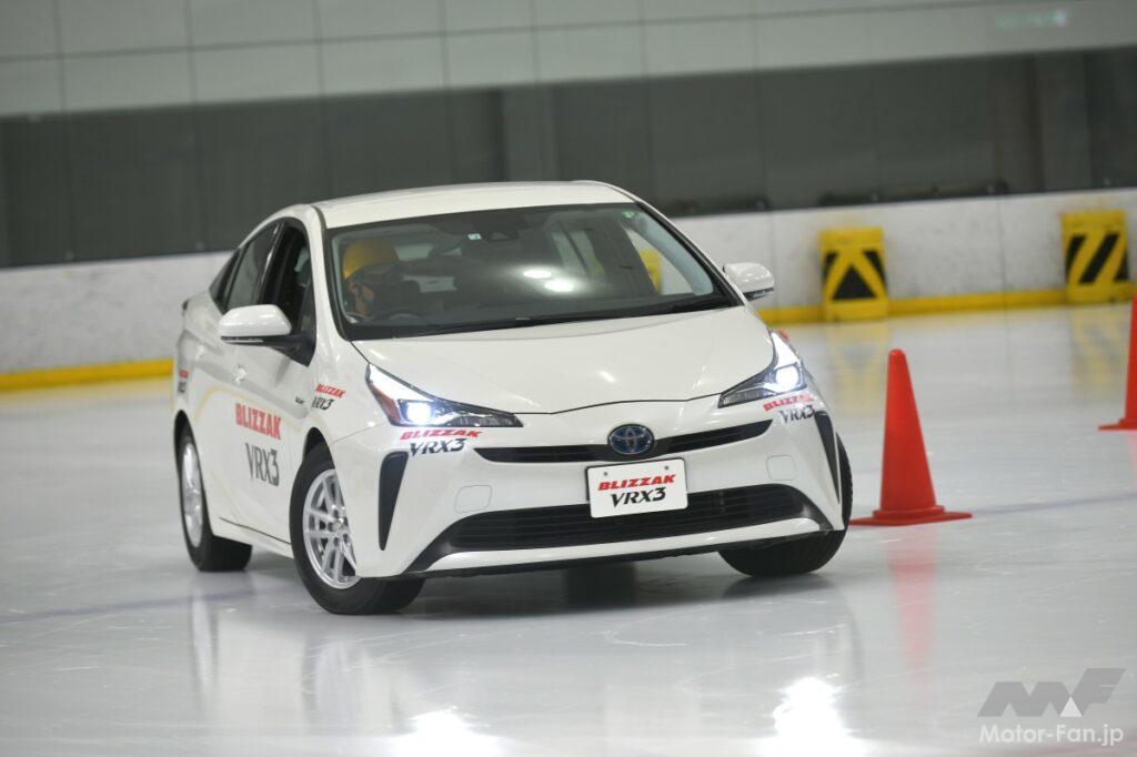 特筆すべきは氷上性能。すなわちアイスバーンでの滑りにくさだ。従来品のVRX2に対して氷上ブレーキ性能は20%アップと飛躍的な性能アップを果たした。これは発泡ゴムの進化が大きい。アイスバーン上にできた水膜を素早く除去するために、円形だった水路の断面形状を楕円形に変更。これにより吸水力が高められ、氷上グリップ性能が大幅に高められた。