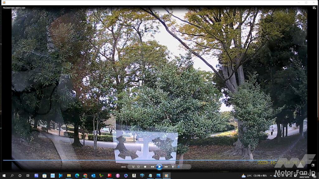 そこで『貼るミエ』を装着。見事にカップホルダーが消えて、緑の色彩も強調されるという副産物まで生まれていた。逆光時のハレーションもしっかり抑えてくれて、完璧に映像記録を残せるのだ。
