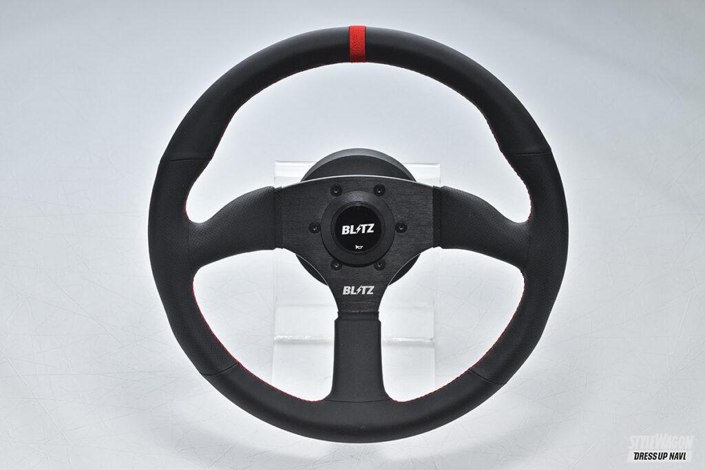 ブリッツの『スポーツステアリングホイール』も、そんなスポーツ派オーナー要注目の一品。小さすぎない350φの、セミディープスタイル(65mm)なので、「ステアリングをもっと手前に寄せたい」ケースでのポジション補正にも最適。Dシェイプでなく真円、3本スポークのシンプルなデザインである点も特徴。グリップ部のデザインも一工夫、トップ部に赤いラインを設定、ステッチ色も赤であるなど、このスポーティなスタイルが気になる人も多いハズ!