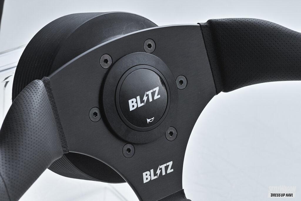 ブリッツの『スポーツステアリングホイール』も、そんなスポーツ派オーナー要注目の一品。小さすぎない350φの、セミディープスタイル(65mm)なので、「ステアリングをもっと手前に寄せたい」ケースでのポジション補正にも最適。Dシェイプでなく真円、3本スポークのシンプルなデザインである点も特徴。グリップ部のデザインも一工夫、トップ部に赤いラインを設定、ステッチ色も赤であるなど、このスポーティなスタイルが気になる人も多いハズ!