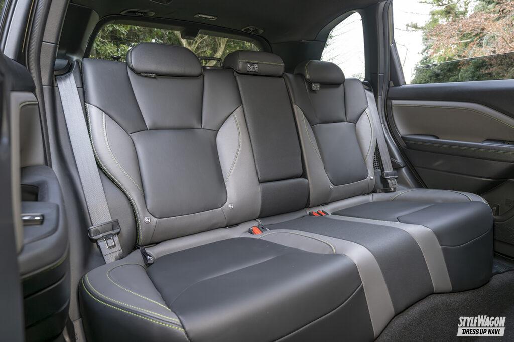 新型の外観デザインコンセプト「Ready for Adventure」を最も分かりやすく体現するのがS:HEVの「X-BREAK」。ブラックルーフやフロントグリルの「エナジーグリーン」の加飾をはじめ、Dピラー下のオーナメントもグリーンになり目を惹く。ルーフレールは、ラギッド感を醸し出すラダータイプのルーフレールを採用。さらに、ダークメタリック塗装が施された18インチアルミホイールも足元に力強さを与えている。撥水ポリウレタン/合成皮革シート(ブラック/グレー)にもグリーンステッチが配され、ラゲッジスムーザー機能付撥水カーゴフロアボードがキャンプやウインター/マリンスポーツなどの趣味に対応。上級の「EX」は、「アイサイトX」を搭載する。