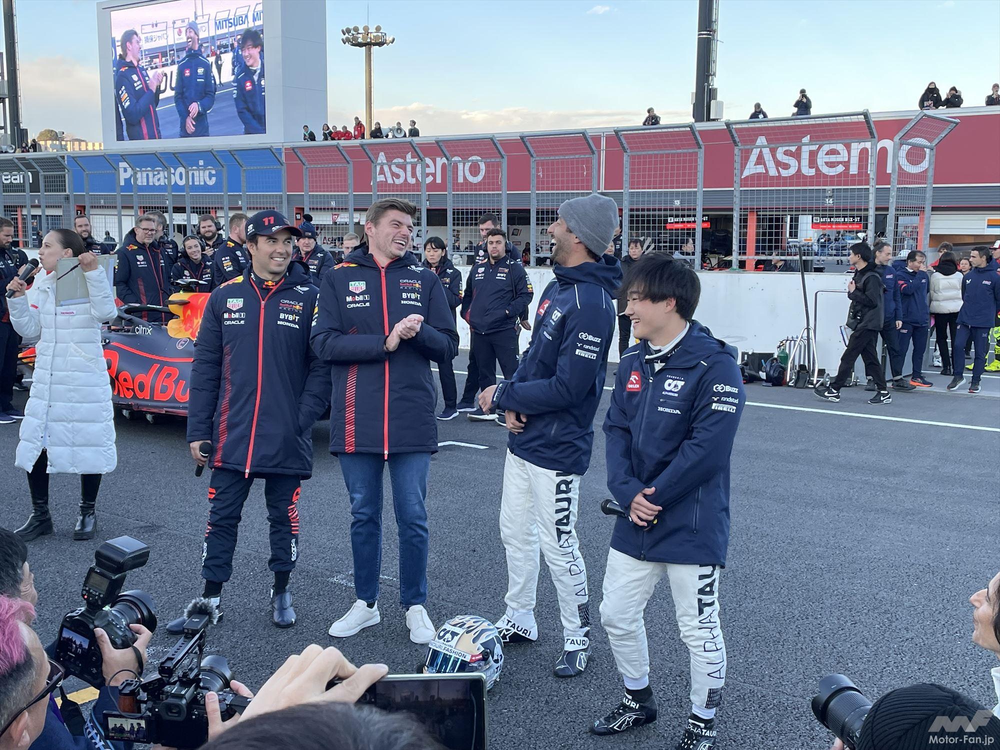 午前には国内トップカテゴリーである全日本スーパーフォーミュラ選手権(SF)で2021年、2022年と連覇を果たした野尻智紀が、2021年にFIAフォーミュラ1世界選手権を制したマシン、レッドブルRB16Bに乗り込んだ。初めてF1マシンをドライブし、もてぎを周回。同時に来シーズンのSFでTEAM MUGENのチームメイトとなる岩佐歩夢が駆るSF23とコラボレーションし、会場を沸かせた。