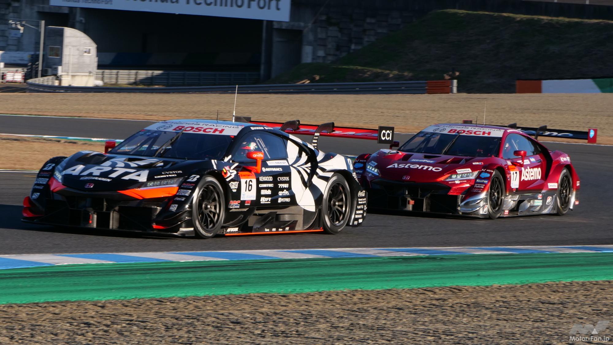 午後には、2023年シーズンいっぱいでスーパーGTシリーズ GT500クラスでの役目を終えるNSX-GT 5台によるデモレースが行われた。「NSX-GT Last Race」と題されたこの催しが同マシンがファンの前で大々的に走る最後のイベント。レース後はNSX-GTとともに戦ったドライバーたちも“愛機”との別れを惜しんだ。