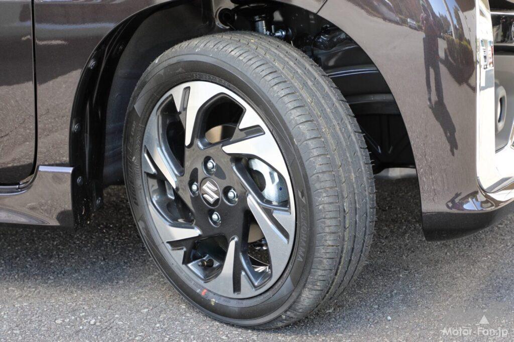 鈴木さん タイヤは14インチ、15インチとも、低転がり抵抗のものを新しく開発しています。タイヤが低転がり抵抗になるとどうしてもネガティブな面が出てきますので、それを車体で吸収したり、いろんな工夫をしています。