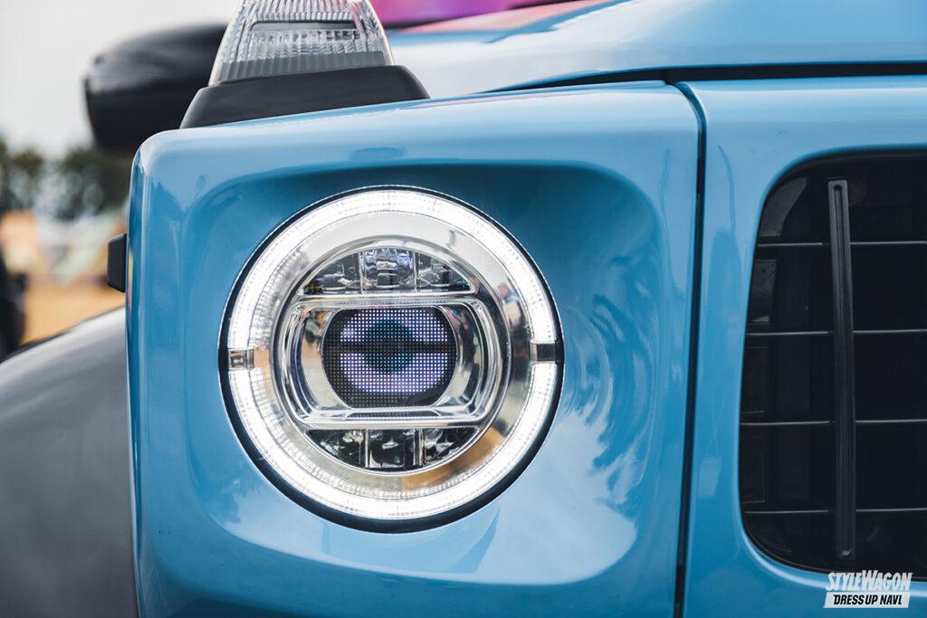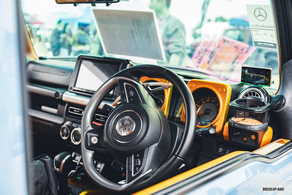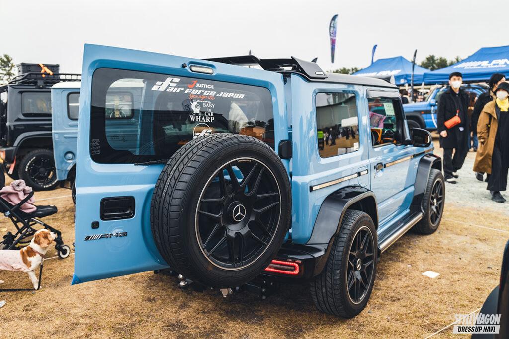 今回は美穂さんのシエラがスタイルワゴン賞のアワードを獲得。入賞の決め手は作り込みを見れば一目瞭然で、細部まで妥協のないGクラス仕様。スタイルコンテストのエントリー車両は人気のオフロードスタイルが多い中、会場でひと際目立っていた。しかもよりリアルなGクラス仕様を目指し、最も実車の雰囲気に近かったというドバイのファストスピード製ボディキットを直輸入。シエラでは珍しいビッグサイズの18インチホイールも同社の製品で、高価な鍛造。ドアミラーやウインカーなど細かい部品はGクラス純正品を使うという徹底ぶり。さらにエアフォースのエアサスを組み、低さでも存在感をアピール。ポン付けでは思うように落ちなかったので、足まわりを加工してさらにローダウン。