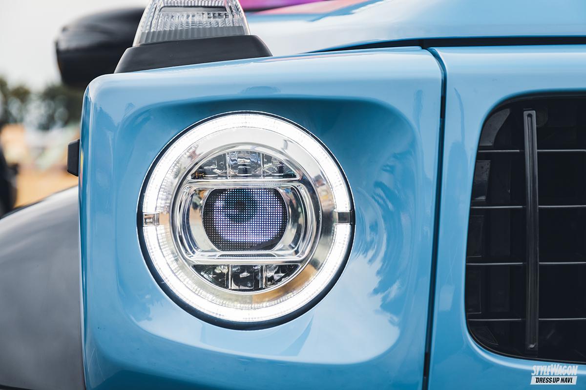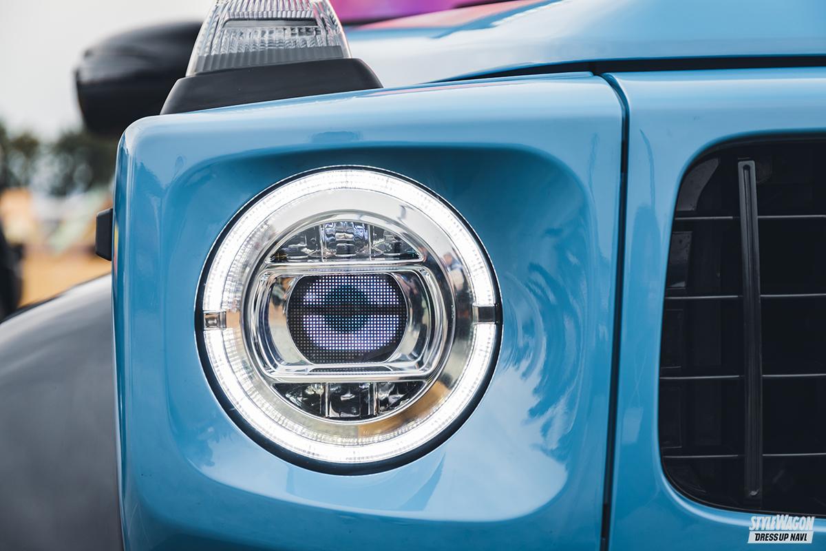 今回は美穂さんのシエラがスタイルワゴン賞のアワードを獲得。入賞の決め手は作り込みを見れば一目瞭然で、細部まで妥協のないGクラス仕様。スタイルコンテストのエントリー車両は人気のオフロードスタイルが多い中、会場でひと際目立っていた。しかもよりリアルなGクラス仕様を目指し、最も実車の雰囲気に近かったというドバイのファストスピード製ボディキットを直輸入。シエラでは珍しいビッグサイズの18インチホイールも同社の製品で、高価な鍛造。ドアミラーやウインカーなど細かい部品はGクラス純正品を使うという徹底ぶり。さらにエアフォースのエアサスを組み、低さでも存在感をアピール。ポン付けでは思うように落ちなかったので、足まわりを加工してさらにローダウン。