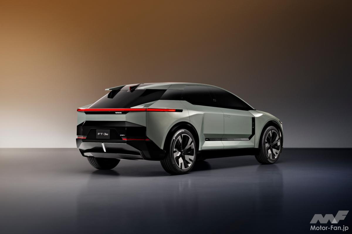 「FT-3e」は、レクサスのラグジュアリーセダン「LF-ZC」やパフォーマンス志向のスポーツカー「FT-Se」を含む多様な製品を生み出すことを可能にする、汎用性の高い新世代BEVアーキテクチャーを特長としている。これらの次世代BEV車は、可能な限り軽量化し、空力特性を最適化することで、効率と航続距離を向上させると同時に、効率的な資源利用を重視したデザインに設計されている。