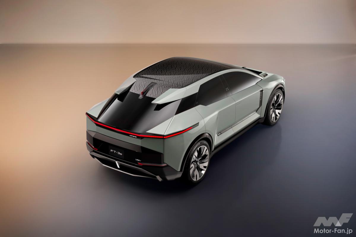 FT-3eは、カーボンニュートラルなモビリティを提供するだけでなく、クルマ自身や周囲との間でデータやエネルギーの伝達媒体として機能し、社会とつながる未来のテクノロジーを幅広く取り入れたコンセプトモデルだ。先進的なスタイリングと美しさを兼ね備えたエクステリアデザインは、ボディラインと表面は可能な限りシンプルに保たれている。