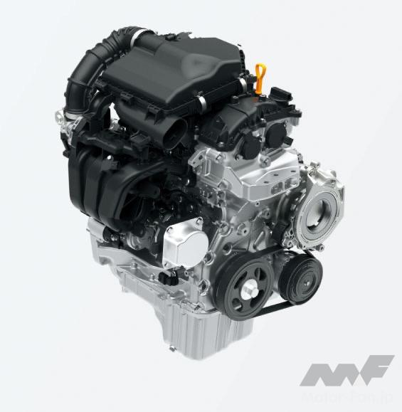 だが、高速燃焼化や高圧縮比化(12.5→13.0)などの燃費改善策に加え、先代より1.9kg軽量化された新開発のCVT、最大トルクが50Nmから60Nmへとアップしたマイルドハイブリッド車用ISG(モーター機能付き発電機)も相まって、マイルドハイブリッド・CVT・FF車のWLTCモード燃費は21.0km/Lから24.5km/Lへと大幅に改善されている